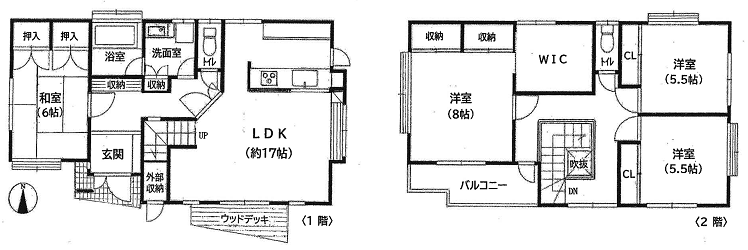 ウォークインクローゼット、浄化槽、プロパンガス、ウッドデッキ