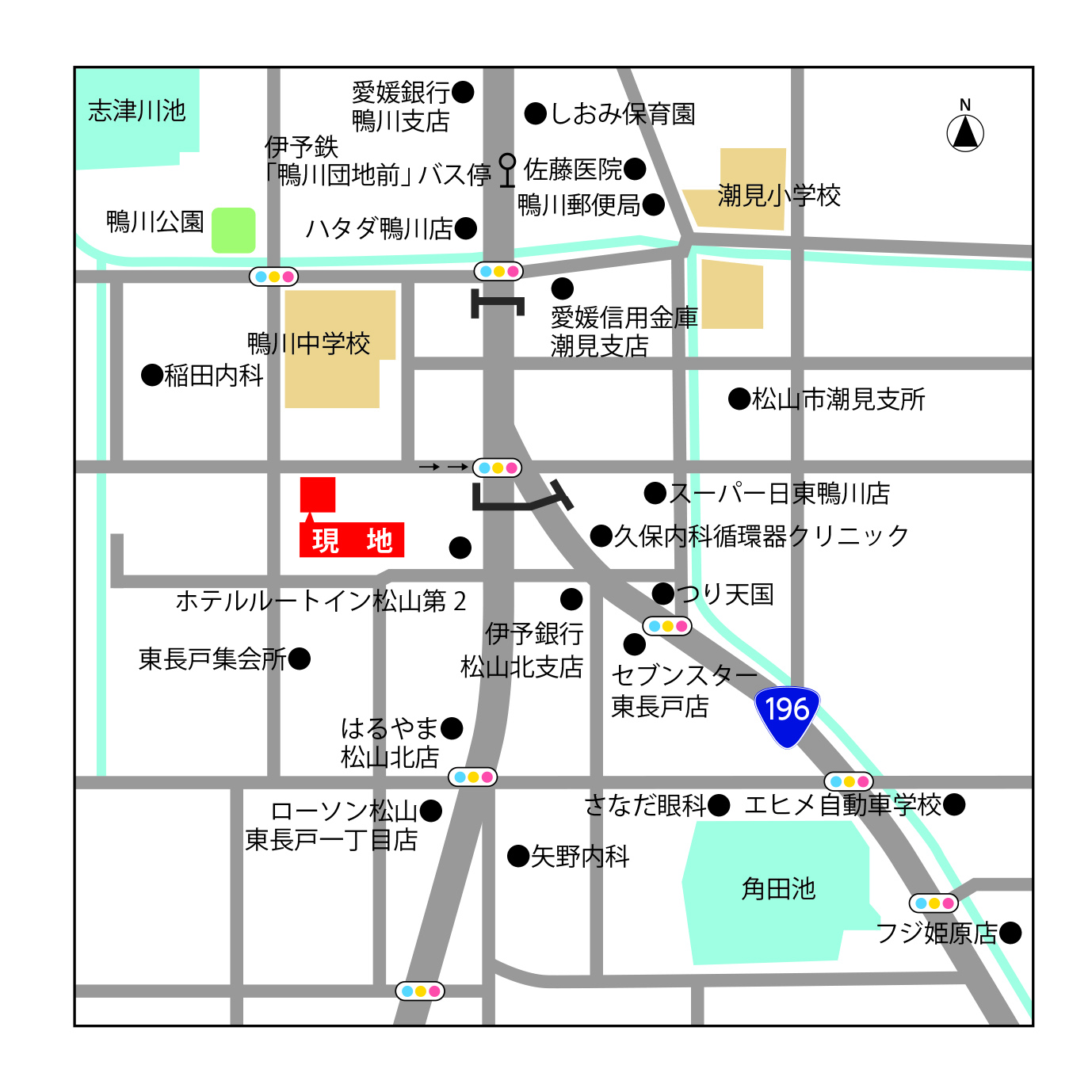 - 伊予鉄「鴨川団地前」バス停 停歩7分